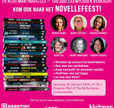 Wil je je Kluitman-novelles laten signeren en op de foto met auteurs als Chinouk Thijssen, Marcel van Driel, Marlen Visser, Eva Burgers en Nadine Swagerman? Wil je als allereerste de nieuwe novelle Eindspel kopen? Of gewoon meer weten over deze korte, spannende boeken voor jongeren? Kom dan zaterdag 10 februari naar het NOVELLEFEEST bij boekhandel Paagman in Leidschendam!